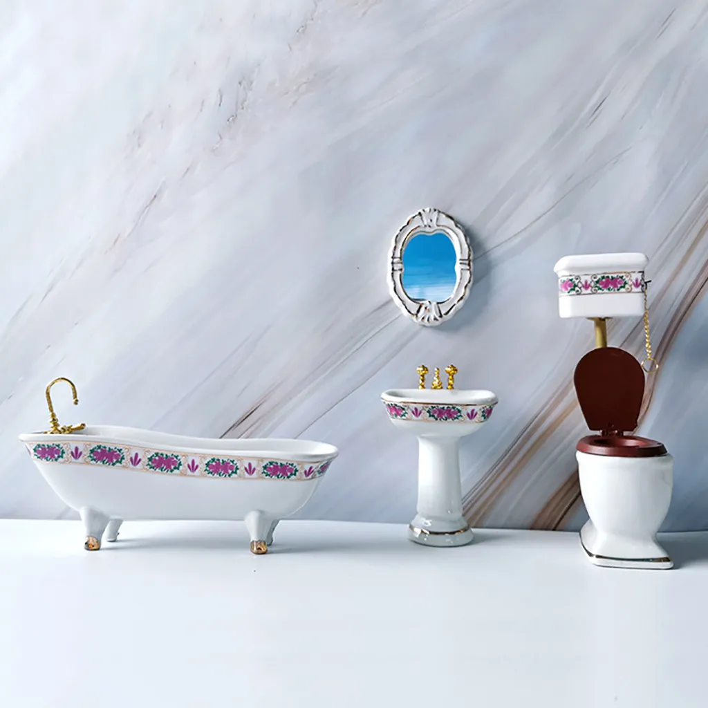 Review Dollhouse Miniature Scene Model Bathroom Set Decoration Pretend Play Toy 2020 Gifts For Kids Детски