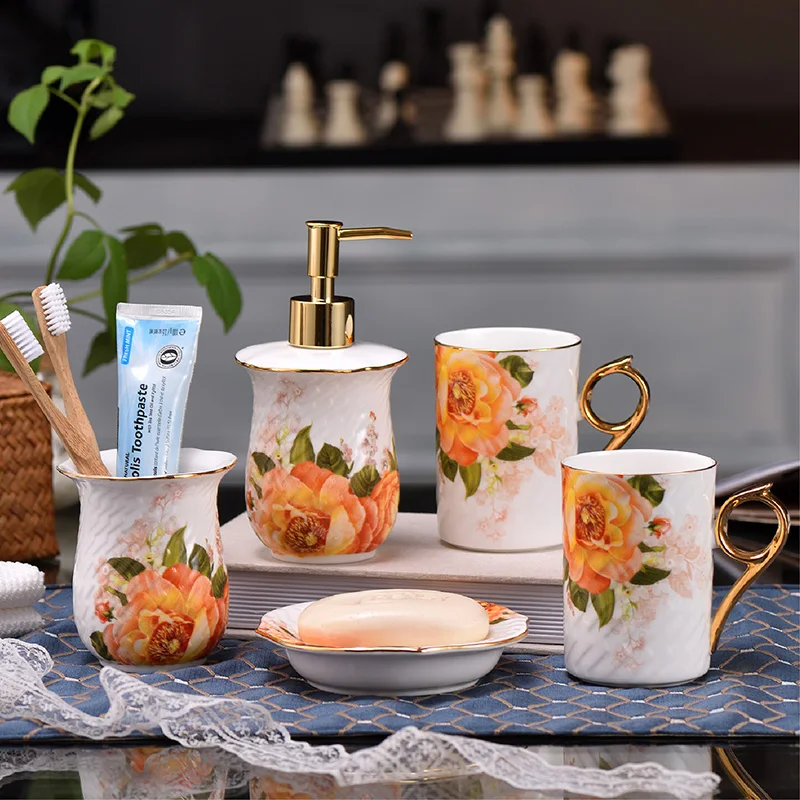 Upscale European-style Bathroom Wash Set Bathroom Household Bathroom Five-piece Bathroom Bath Mug C